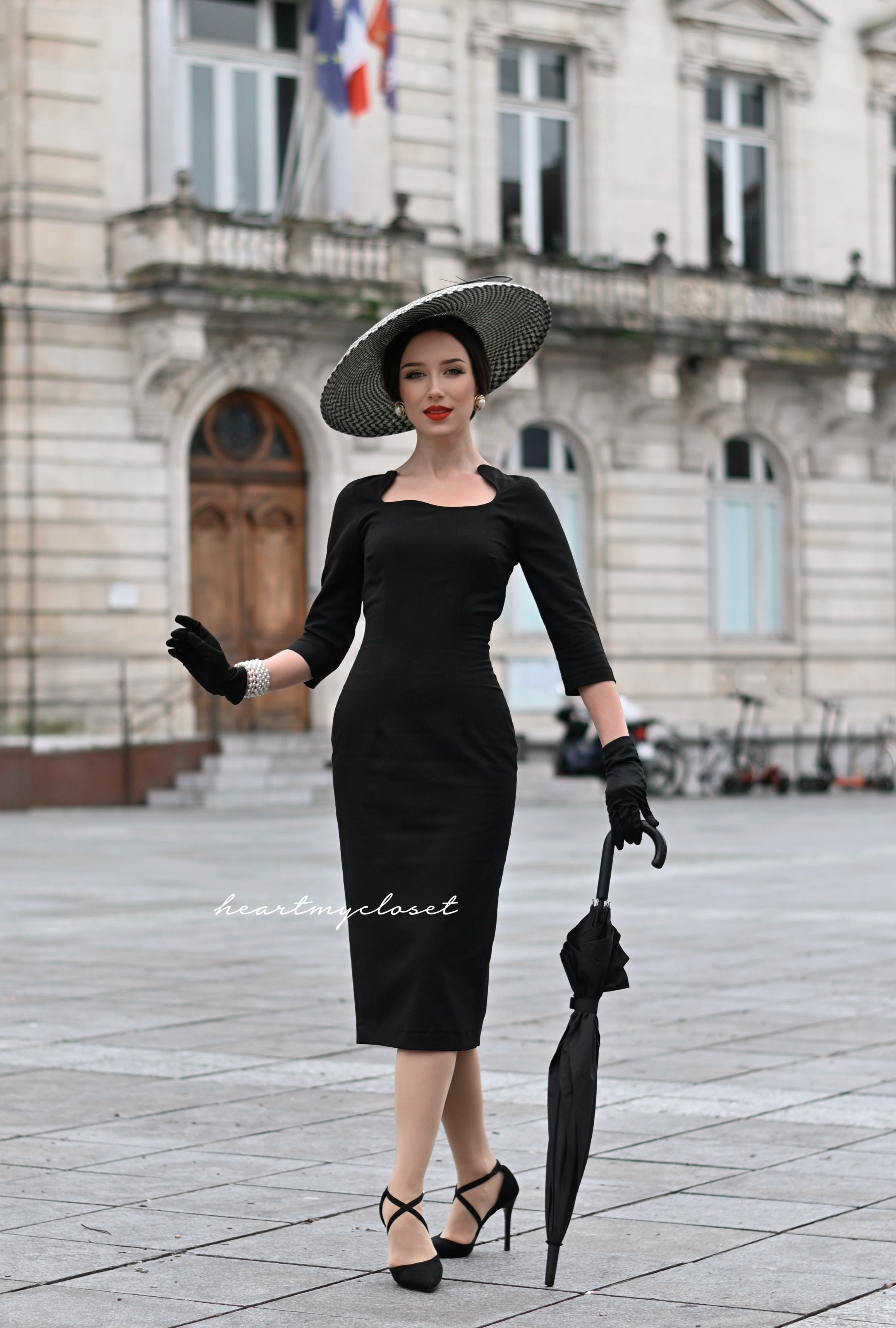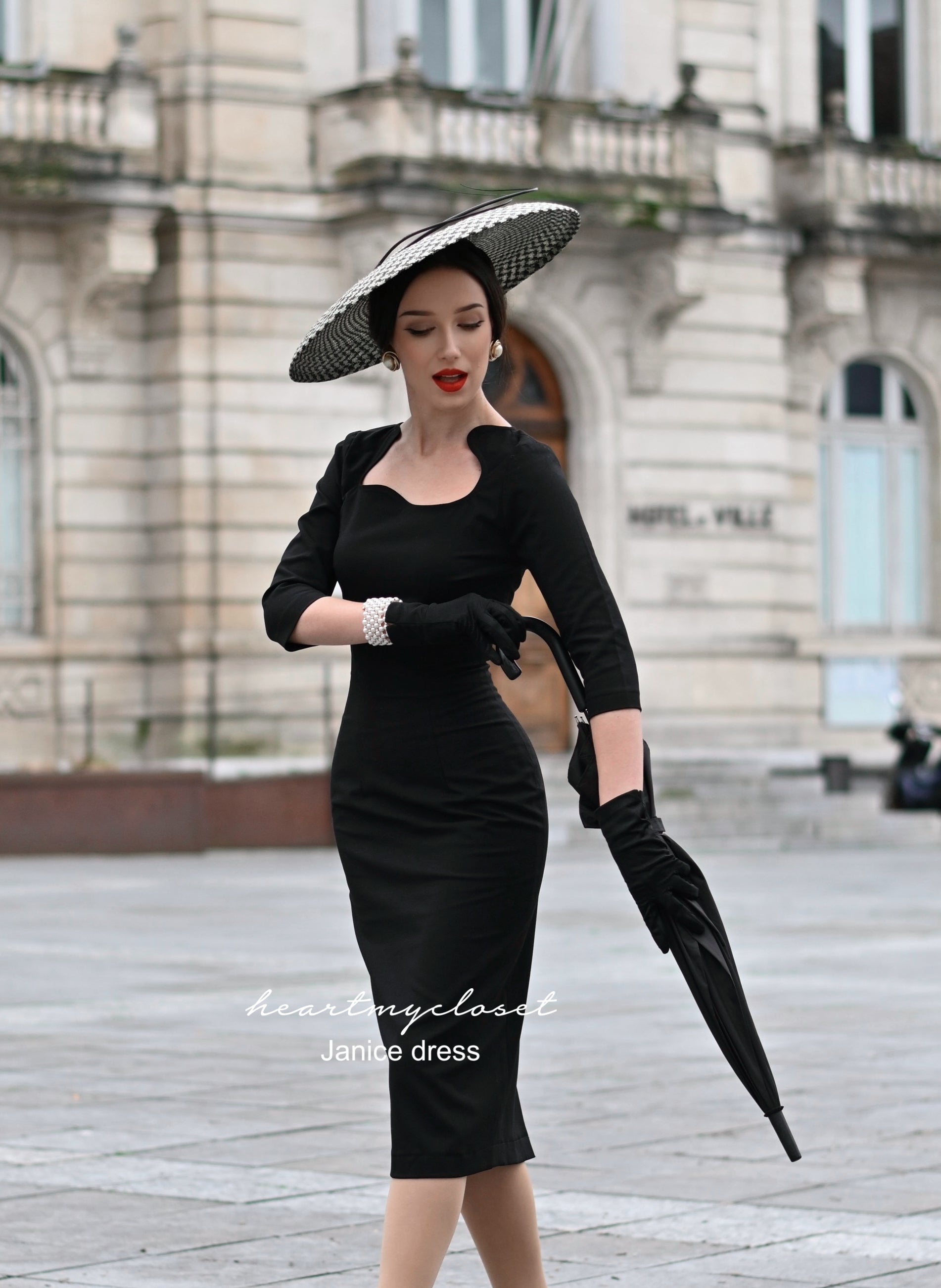 Mila pinstripe - wiggle pencil dress with pleated puff sleeves