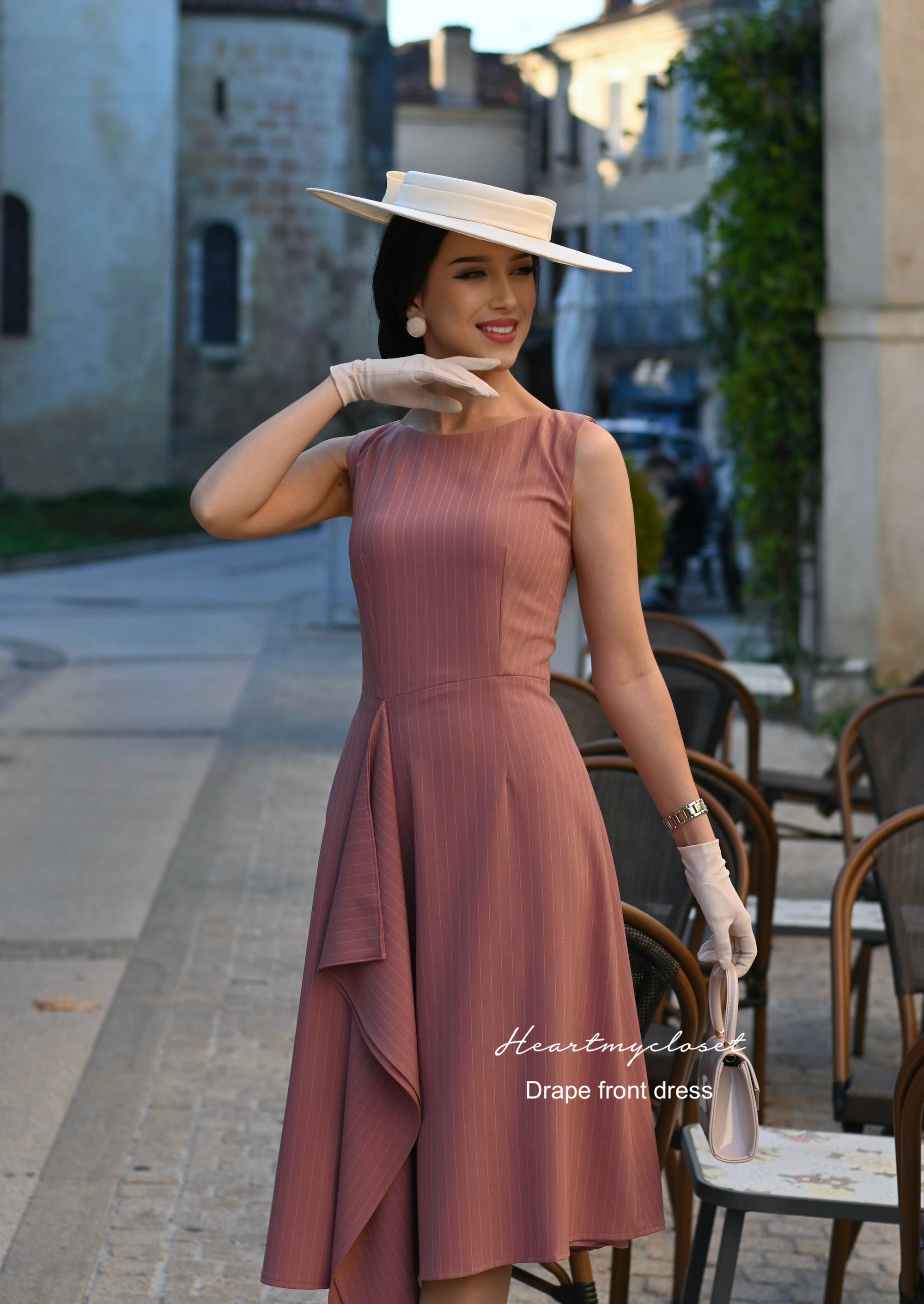 PEARL BUTTONS - Pencil dress with white contrast collar