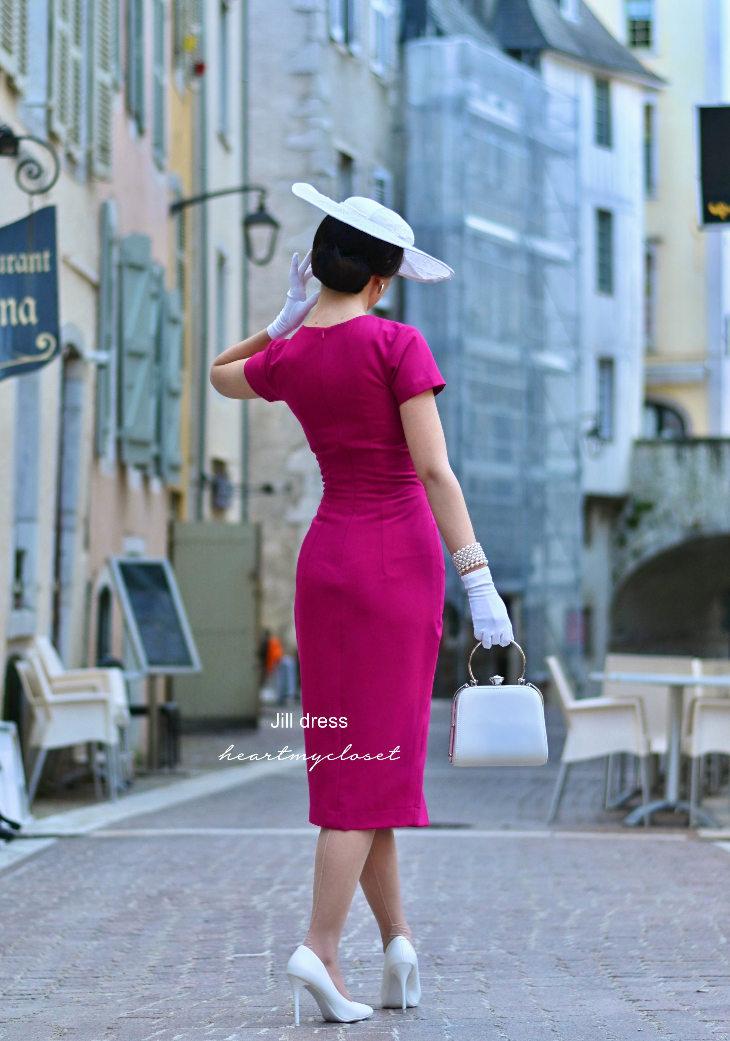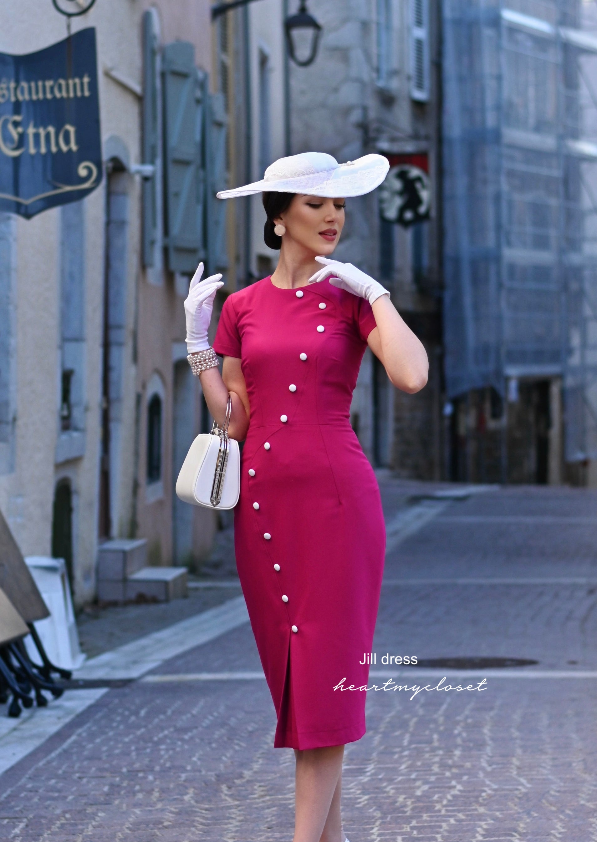JILL- 1950s pencil dress with contrast trim & buttons